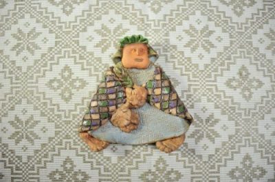 Nuotraukoje matoma muziejinės vertybės, saugomos Lietuvos etnokosmologijos muziejaus fonduose: lovatiesė – pasiūta mašina, audė Emilija Patiejūnaitė. Mažvilkiškės k., Daugėliškio sen., Ignalinos r. Meno kūrinys – Žemyna; dailininkė keramikė G. Jacėnaitė.