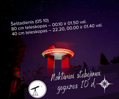 40 cm teleskopas – 22.20, 00.00 ir 01.40 val.