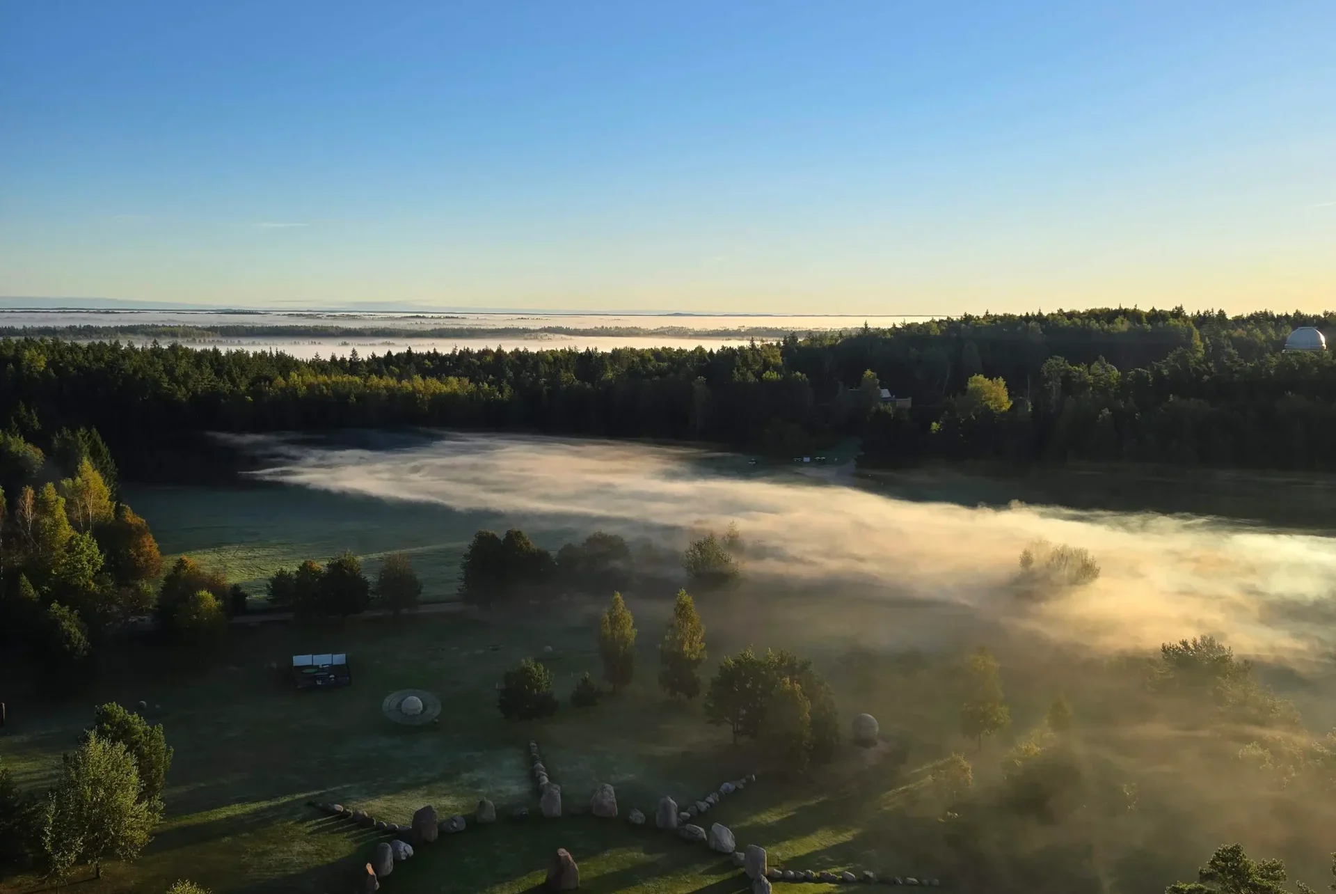 Skubantiems arba jau buvusiems muziejuje kelis kartus, siūlome trumpą apsilankymą – pakilimą į muziejaus apžvalgos aikštelę, kuri yra 32 metrų aukštyje, o giedrą dieną suteikia galimybę apžiūrėti 21 kilometro tolius. Lankytojai iš aukštai galės apžiūrėti kalendorinį akmenų ratą ,,Lietuvos Saulė“, kuris yra muziejaus lauko ekspozicijoje. Kalvotas ir miškingas kraštovaizdis pasižymi ežerų gausa. Molėtų rajone tyvuliuoja 285 ežerai, taigi pakilę į  32 metrų aukštyje esančią muziejaus apžvalgos aikštelę turėsite unikalią galimybę vienu metu išvysti šešis ežerus.  Taip pat esant geroms oro sąlygoms galėsite pamatyti tolumoje stūksančias  Aukštaitijos Nacionalinio parko kalvas prie Tauragnų ežero. Esant giedrai dienai tolumoje išvysite Molėtų ir Alantos miestelių bažnyčių bokštus. Pakilimo trukmė iki 30 min., pakilimai vyksta tik darbo dienomis ir esant galimybėms. Dėl pakilimo rekomenduojame skambinti prieš atvykstant tel. nr. +37061520688. Į apžvalgos aikštelę galima pakilti laiptais arba liftu. Pakilimas, suderinus iš anksto, gali vykti anglų ar rusų kalbomis.