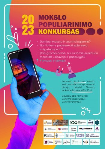 Domiesi mokslu ir technologijomis? Nori kitiems papasakoti apie savo mėgiamą sritį? Galbūt nori ją dar geriau suprasti? Arba įžvelgi problemas, su kuriomis susiduria mokslas Lietuvoje ar pasaulyje? Dabar puikus šansas atskleisti šias įdomybes visuomenei! Dirbtinis intelektas, klimato krizė, atsinaujinanti energetika, virusų pasaulis, NASA Artemis misijos į Mėnulį, genų inžinerija, kaip mus veikia stresas – mokslininkai tyrinėja daugybę sričių. Griebk išmanųjį telefoną ir papasakok apie mokslą įdomiai. Kartu su „Konstanta42“ ir Lrt.lt skelbiame jau dešimtus metus organizuojamą tradicinį mokslo populiarinimo konkursą! Itin išpopuliarėjus „TikTok“ „Instagram Reels“ „YouTube Shorts“ filmukams, šiais metais kviečiame kurti trumpus vaizdo įrašus. Laukiame jūsų įdomių filmukų iki 2023 m. balandžio 30 d. 23:59:59 adresu konkursas@konstanta.lt. Plačiau: http://mokslosriuba.lt/kartumesgalime/mokslo-populiarinimo-konkursas-2023/?fbclid=IwAR0AZ-Hmi0Jh6N_mAXphZKqJ4WC5rURW1XIQ5gs89BOxJYtXCichbHrrPo8