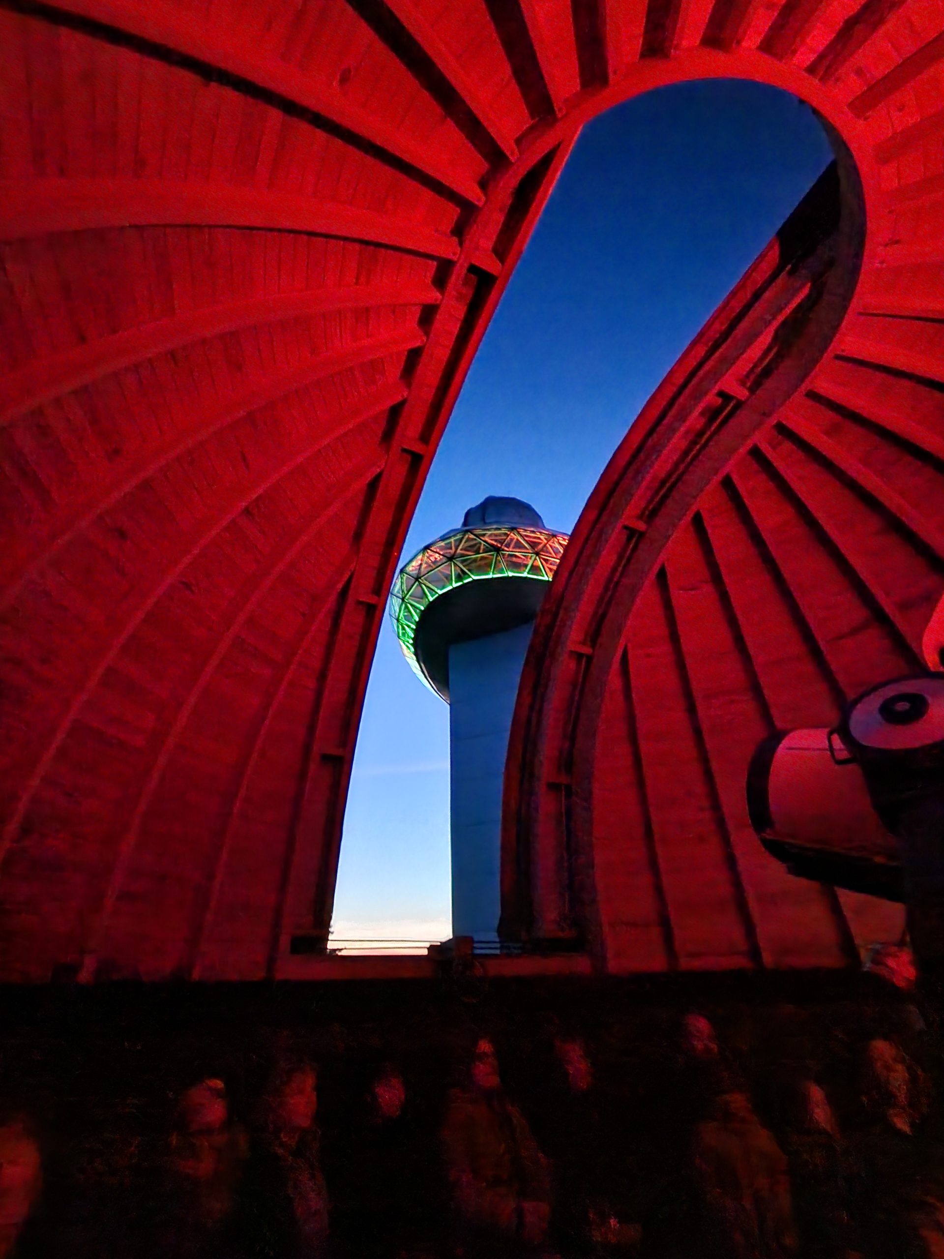 Teleskopo bokšte telpa iki 18 lankytojų.